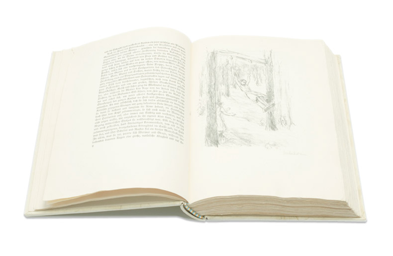 Mit 21 Steinzeichnungen von Max Liebermann. Druck der Officina Serpentis, Berlin. 1926/1927. 325 Exemplare. Quart. 320 Seiten. Pergamentband nach Entwurf von Marcus Behmer.